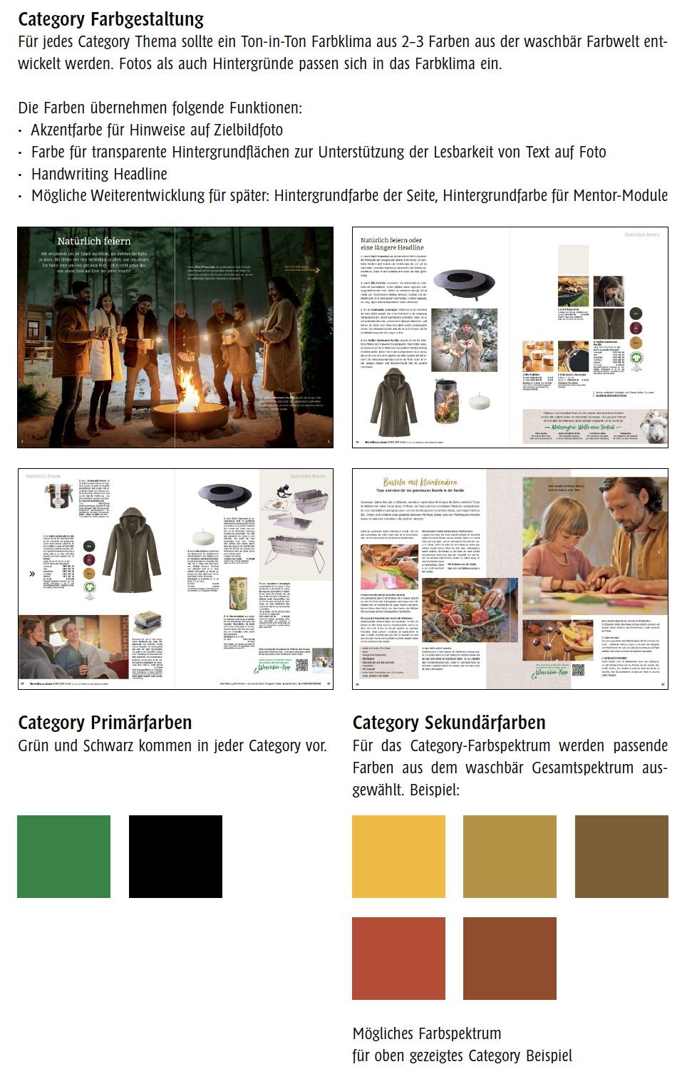 Der Katalog war mit seiner Komplexität an Produkten und Storyelementen das Kernstück der Ausarbeitung. Bei der gestalterischen Ausarbeitung und beim Anlegen der pragmatischen Layoutvorlagen waren zahlreiche bestehende Schriftformate gleichzeitig gute Basis sowie Herausforderung für eine später interne klare Anwendung. Hier konnte ich auf mein breites Spektrum an Fachexpertise für typografischen Feinheiten, Bildsprache und dramaturgisch spannende Layoutentwicklung sowie technische Dokument- und Stilformat-“Akrobatik” zurückgreifen.