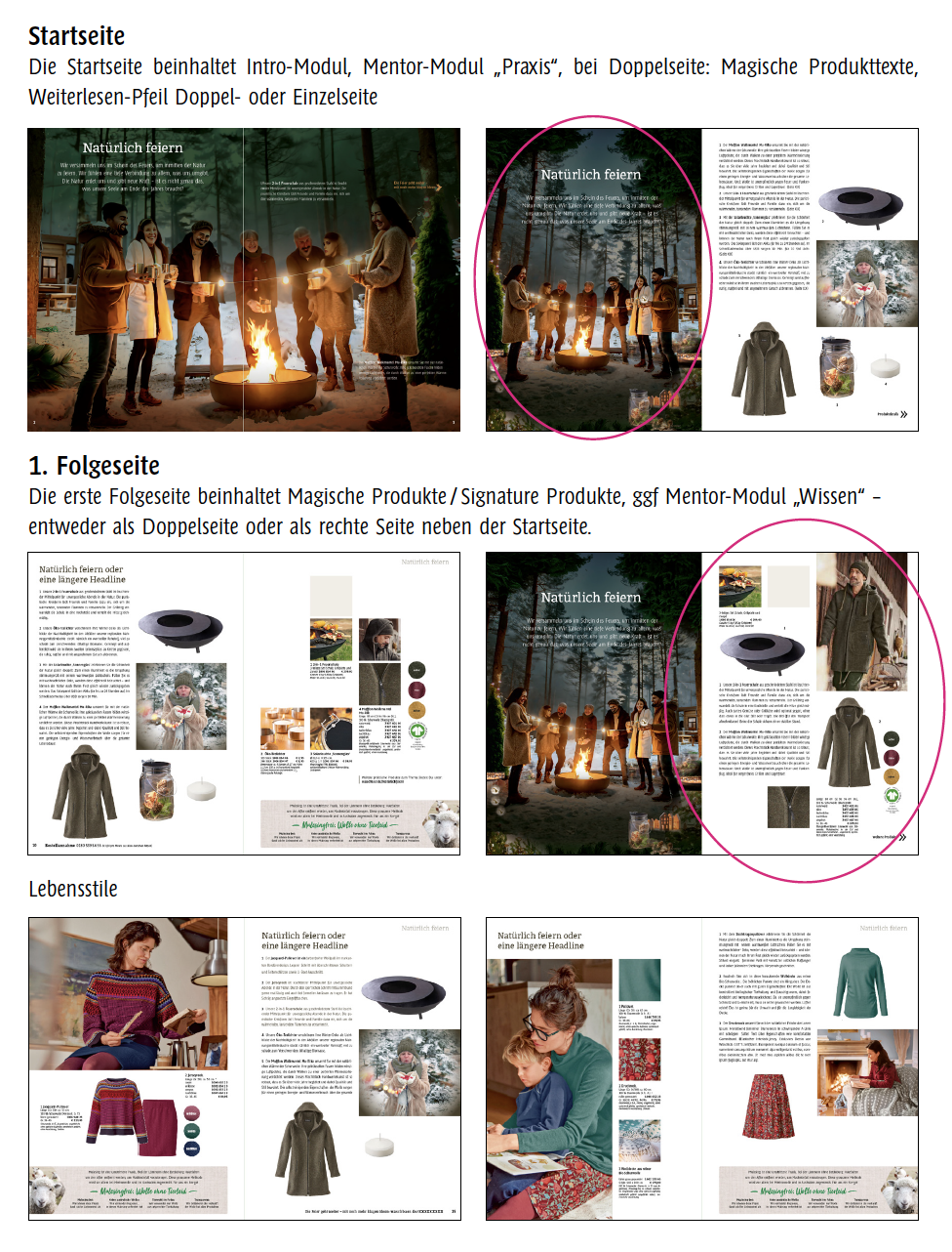 Katalog mit verschiedenen Seitentypen