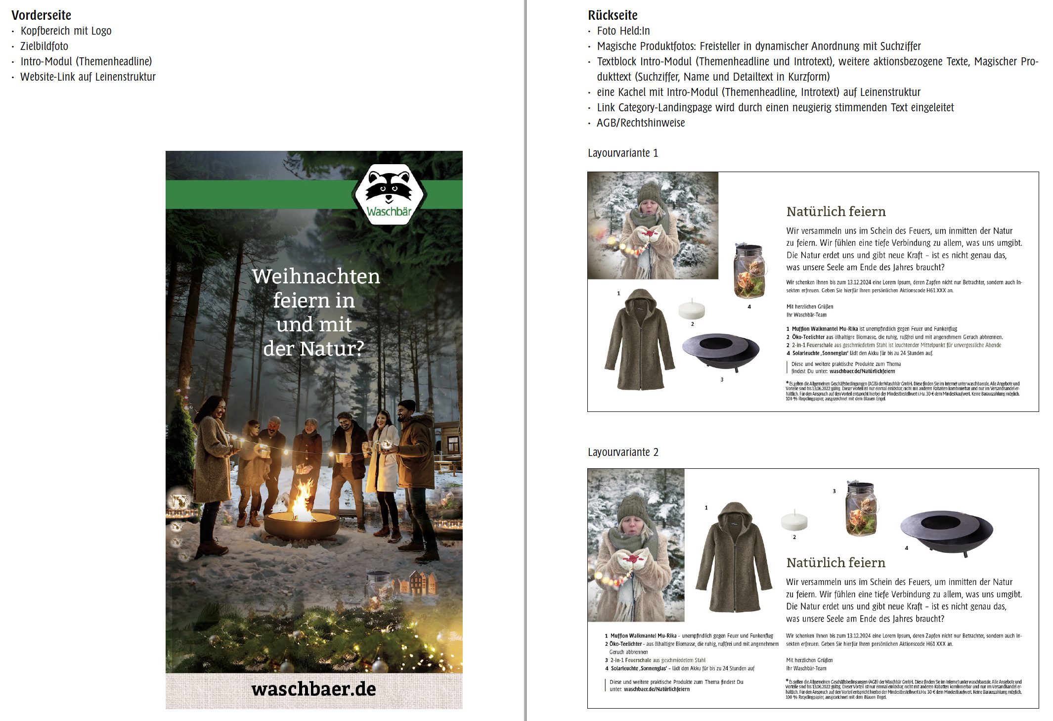 Für den Umweltversand waschbär sind verschiedene Konzepte entstanden: