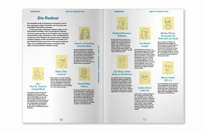 sustainable profits war eine Veranstaltung die den aktiven Austausch zwischen Vordenkern und Vormachern anregen möchte: Halb Konferenz, halb Werkstatt eröffnete sie Managern und Designern die Möglichkeit, sich von spannenden Impulsvorträgen aus der Praxis inspirieren zu lassen, in interaktiven Design Thinking Workshops innovative Antworten auf komplexe Fragen des nachhaltigen Wirtschaftens zu entwickeln und über die gewonnenen Erkenntnisse in Panels konstruktiv zu diskutieren. Manager lernen von Innovatoren und Kreativen jenseits der Konzernwelt, wie sie Designmethoden entlang der gesamten Wertschöpfungskette bewusst einsetzen können. Kreative Innovatoren erhalten Impulse, wie sie das Wirtschaftswissen von Unternehmen besser für gestalterische Entscheidungen nutzen können.