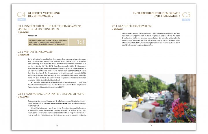 Im Jahr 2014 stellte er schließlich seine erste Gemeinwohl-Bilanz auf. Und die kann sich sehen lassen! Einen Zahnarzt, dem man unternehmerisch, als auch menschlich, so stark vertrauen kann, habe ich natürlich sehr gern bei der Gestaltung des Gemeinwohl-Berichtes unterstützt.